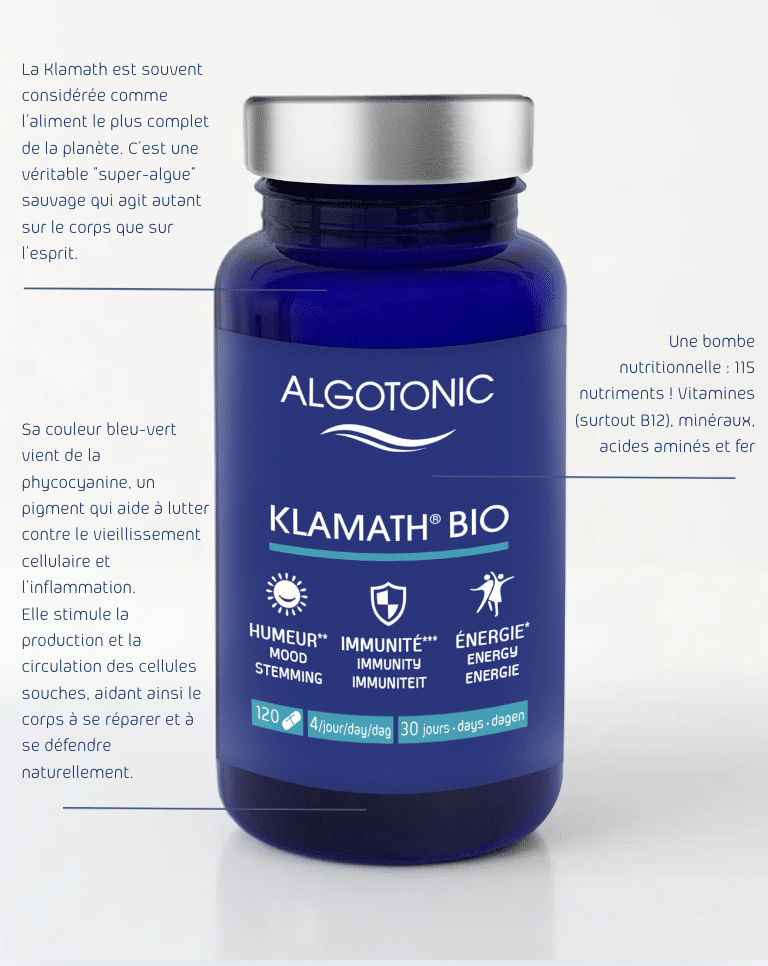 Grâce à sa richesse nutritionnelle inédite et à ses nombreux bienfaits sur le physique et le mental, la Klamath est un complément alimentaire incontournable pour soutenir la santé et la vitalité globale. En intégrant la Klamath d’Algotonic dans votre routine quotidienne, vous bénéficiez d’un super-aliment 100 % naturel et sauvage qui contribue à dissiper la fatigue, à maintenir votre équilibre émotionnel, à renforcer votre concentration et à soutenir votre bien-être général.
